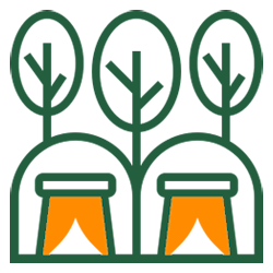 Shaded forest campsites and a spacious pull-through RV lot offer electric hookups, fire rings, and picnic tables. Located near trails, water access, and amenities, they’re ideal for relaxed, family-friendly stays surrounded by peaceful farm nature.