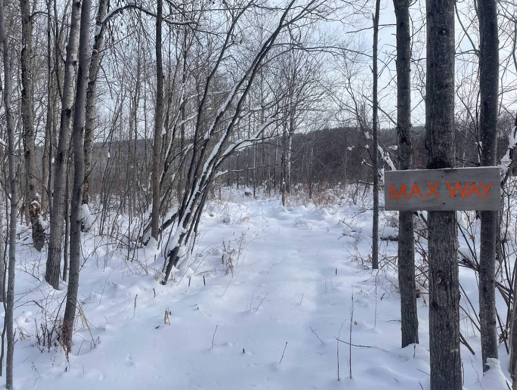 Marked and unmarked trails through forest and open fields offer year-round outdoor exploration, ideal for walking, snowshoeing, and quiet nature experiences in every season.